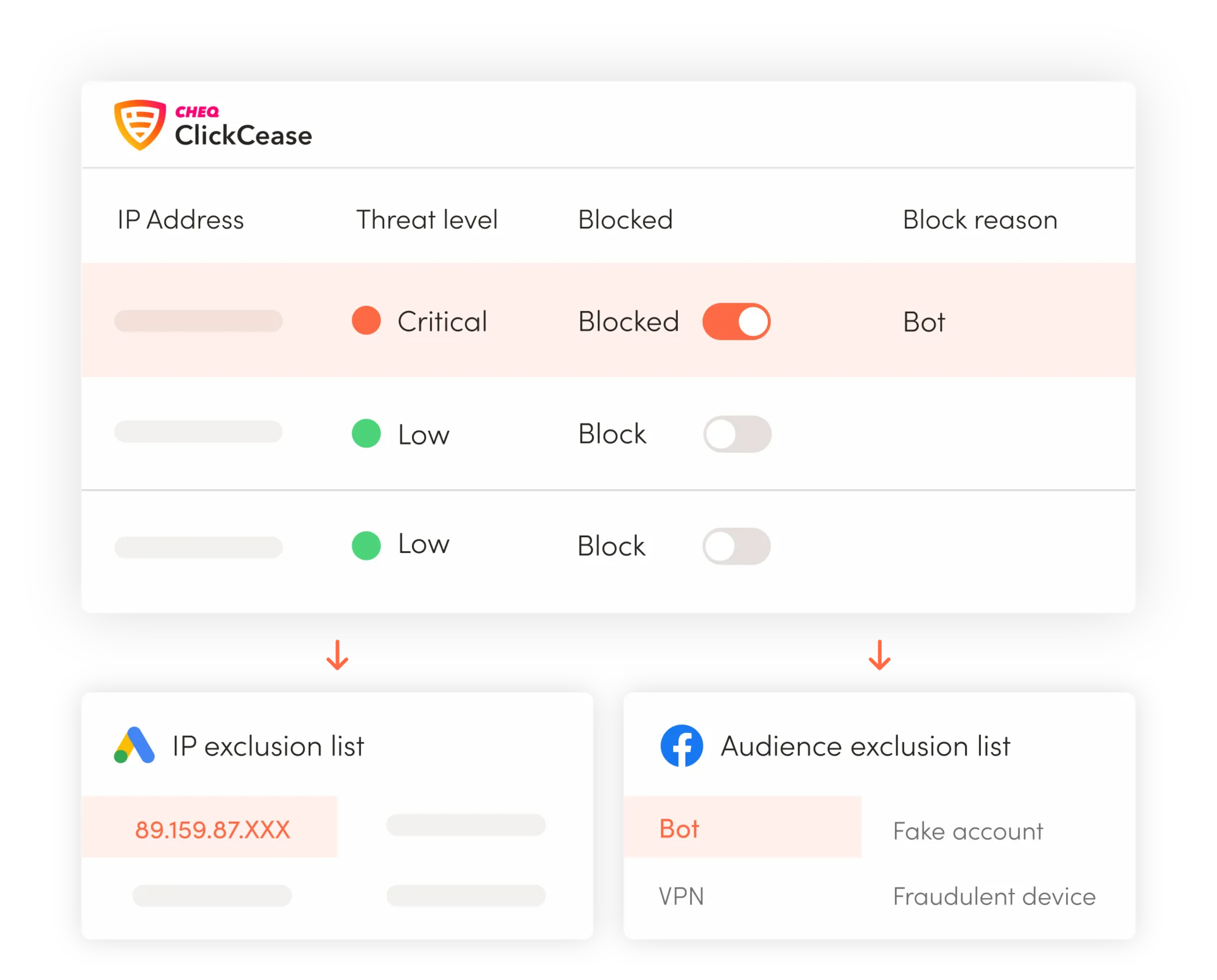- Sæt løbende overvågning op — tjek rapporterne jævnligt, og brug ClickCease-logs til at indberette mønstre eller særlige IP-blokeringer.