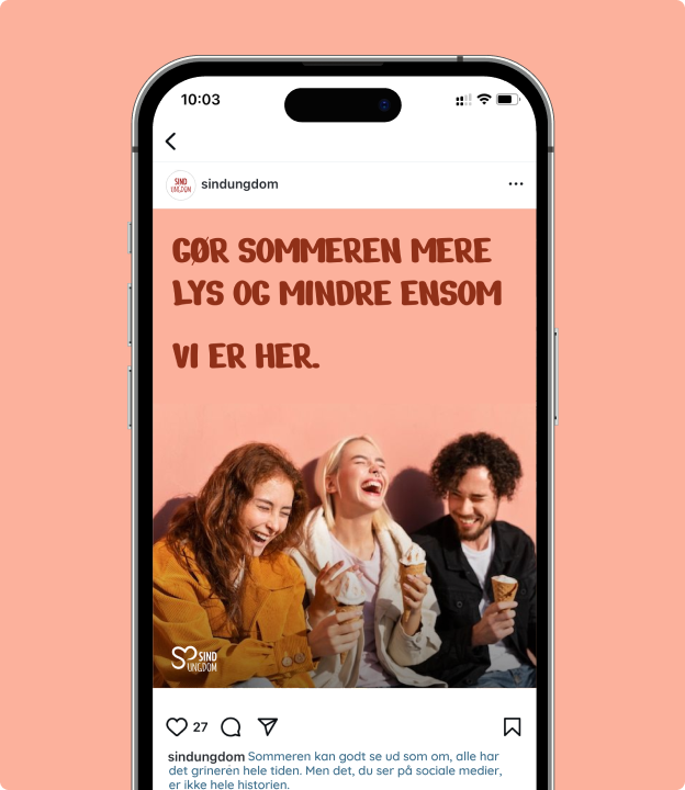 I processen opsatte vi et målretningssetup i Meta (Facebook og Instagram), som gjorde det nemt og effektivt for medarbejderne hos SIND Ungdom bare at producere nyt indhold og skifte det ud i kampagnerne løbende uden at skulle nørkle med teknikken.